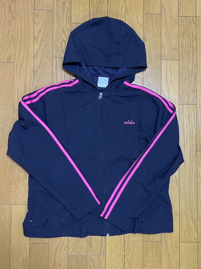 - 送料無料■adidas アディダス ネイビー フルジップ ジャケット 長袖 サイズ2XO USA古着 レディース