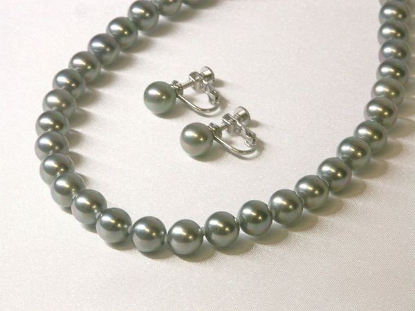 - まつよ 花珠貝パールネックレス イヤリングセット 42cm 黒真珠グレーカラー8ミリ42センチイヤリング koagrpn-08-1-42-ring