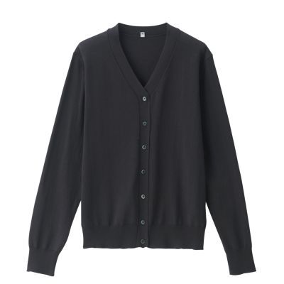 > ◆美品 MUJI 無印良品 UVカット 強撚 Vネック カーディガン XL ダークグレー オーガニックコットン 定番 洗濯済み 匿名発送