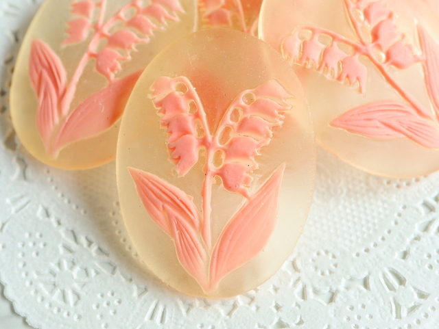 > すずらん フラワー 花 ヴィンテージ リプロ カメオ カボション 大きめ レトロ ハンドメイド パーツ ピンク 30×40mm ブローチに 2個