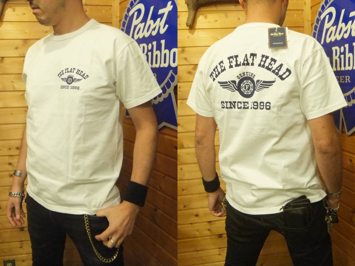 - フラットヘッド正規店 FN-THC-202 毎年継続=定番シリーズ! 厚手生地の半袖Tシャツ[白][紺プリント][42]新品が送料無料!!