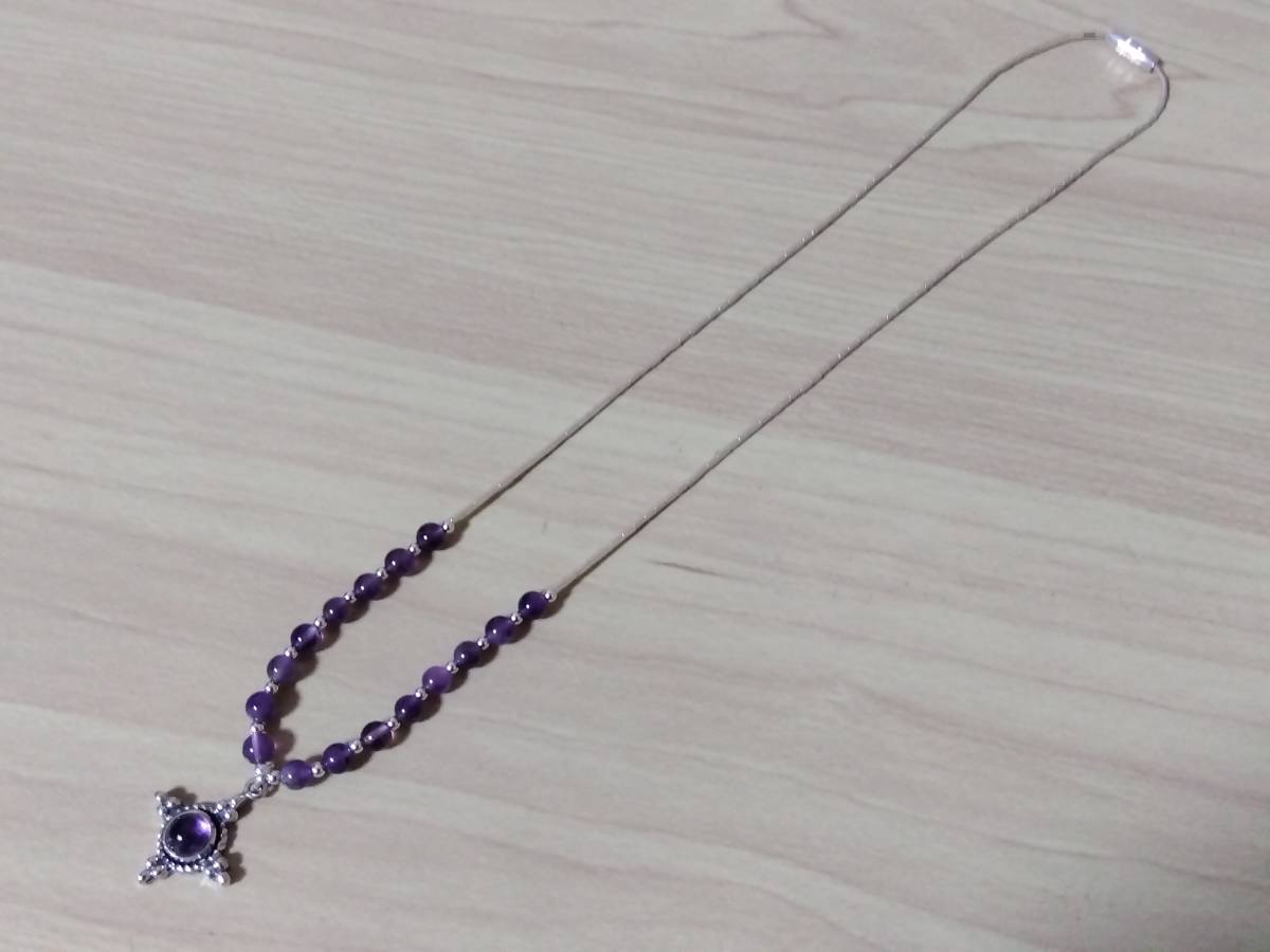 - 未使用 即決!! ¥1500 シルバー925 アメジスト パワーストーン ネックレス USA製