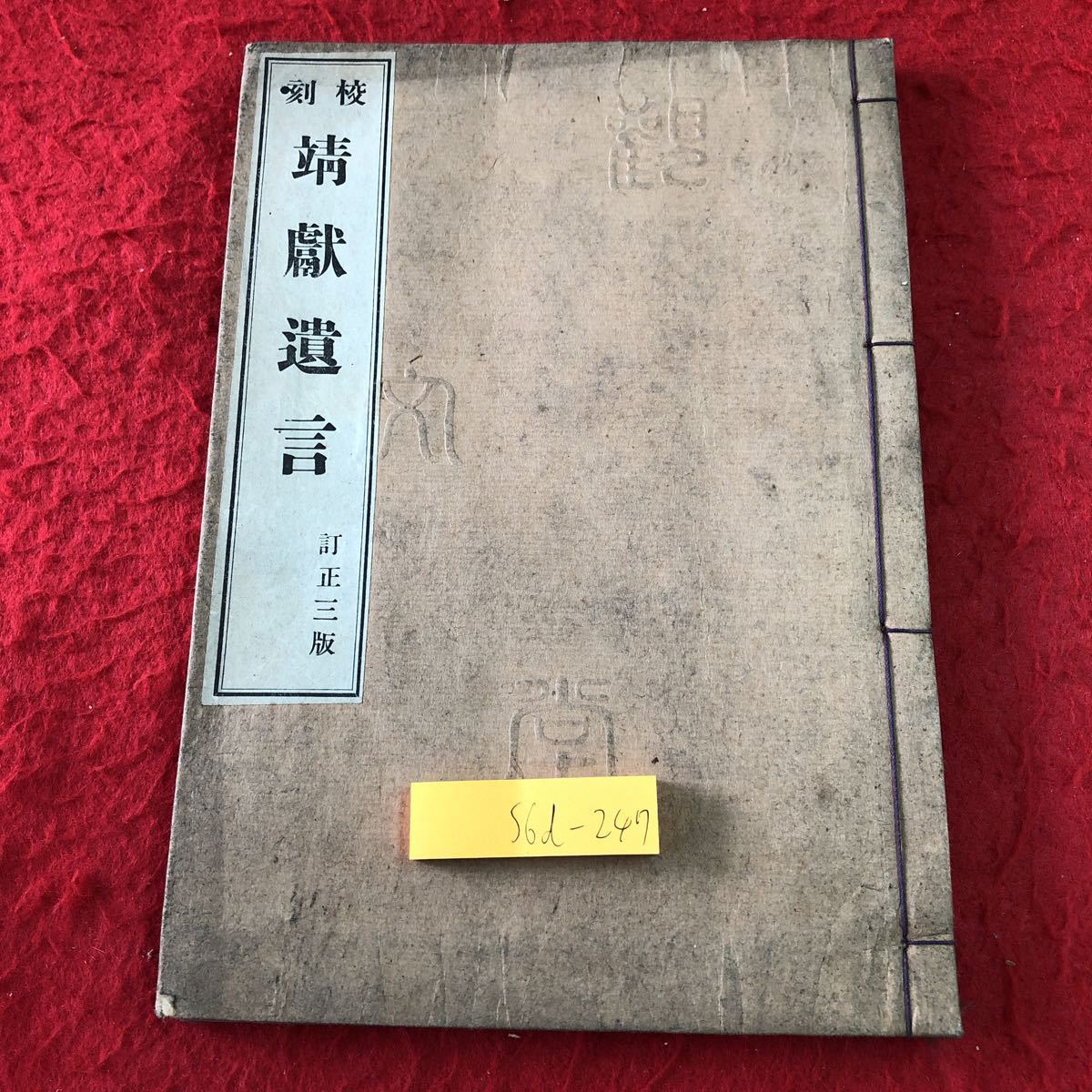 - S6d-247 校刻 靖?遺言 大正9年8月25日 第3版発行 觀文堂 古書 和書 漢文