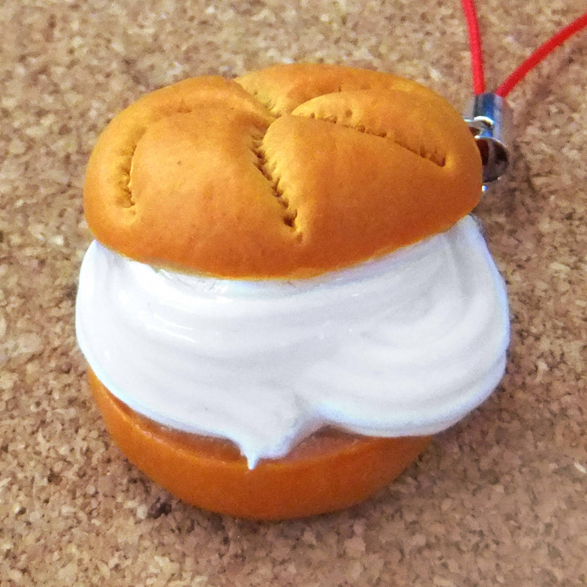 > ◇ハンドメイド◇ シュークリーム(クリームはみ出し) ストラップ C137