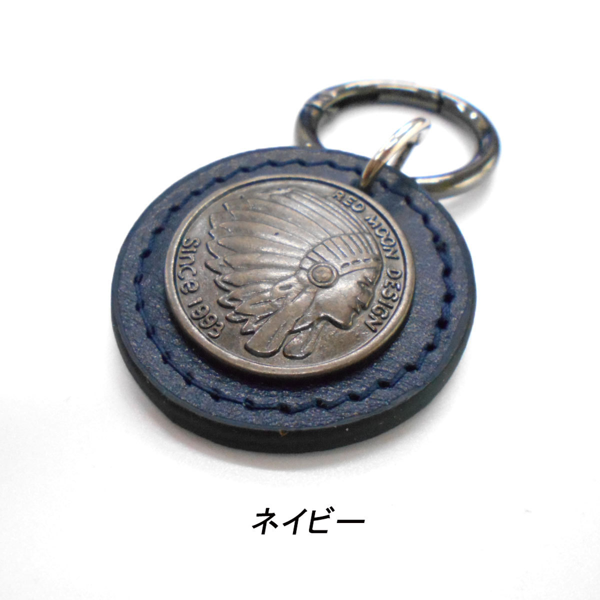 - 本革 丸型キーホルダー コンチョ/ネイビー/男性 女性 レディース メンズ インディアン レザー