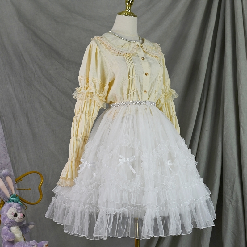 - Lolita ロリータ オーバースカート ペチコート付き スカート チュールスカート 2Way ボトムス ゆめかわいい ロング丈 ミディアム丈 丈63cm