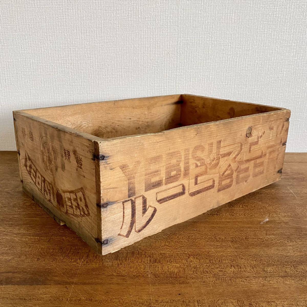 - 昭和レトロ 古いエビスビールの木箱 YEBISU BEER / 木箱 収納 ウッドボックス エビス 当時物 アンティーク 【難有り】