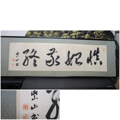 > ★額 飾り 大きめ 書? 50×150㎝ 奥行き2㎝ ※全体にシミ汚れあり・裏面に破れが数箇所あり tm2305-29-12★
