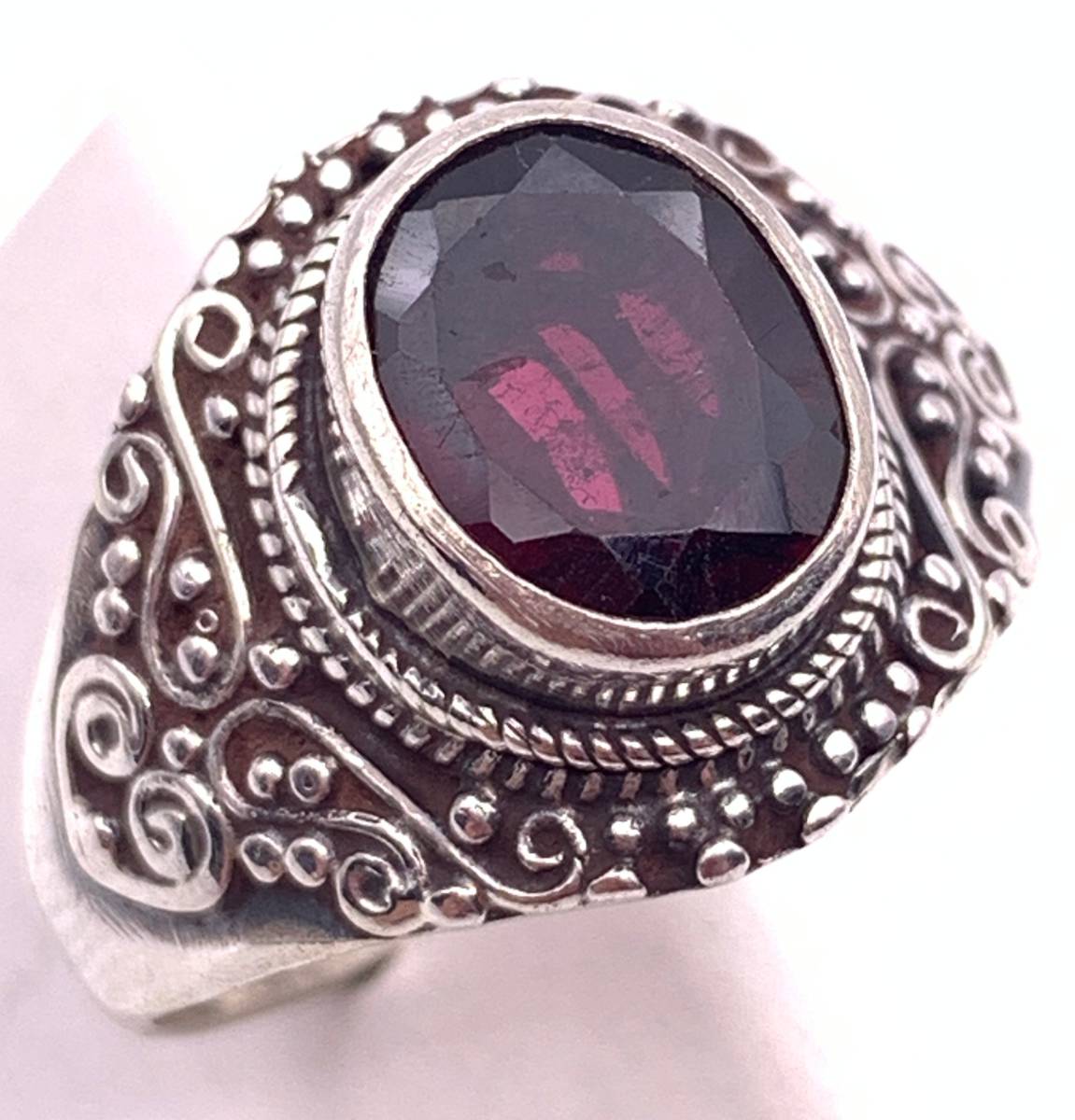 - 天然石ガーネット アンティーク風silver925リング☆20.5号