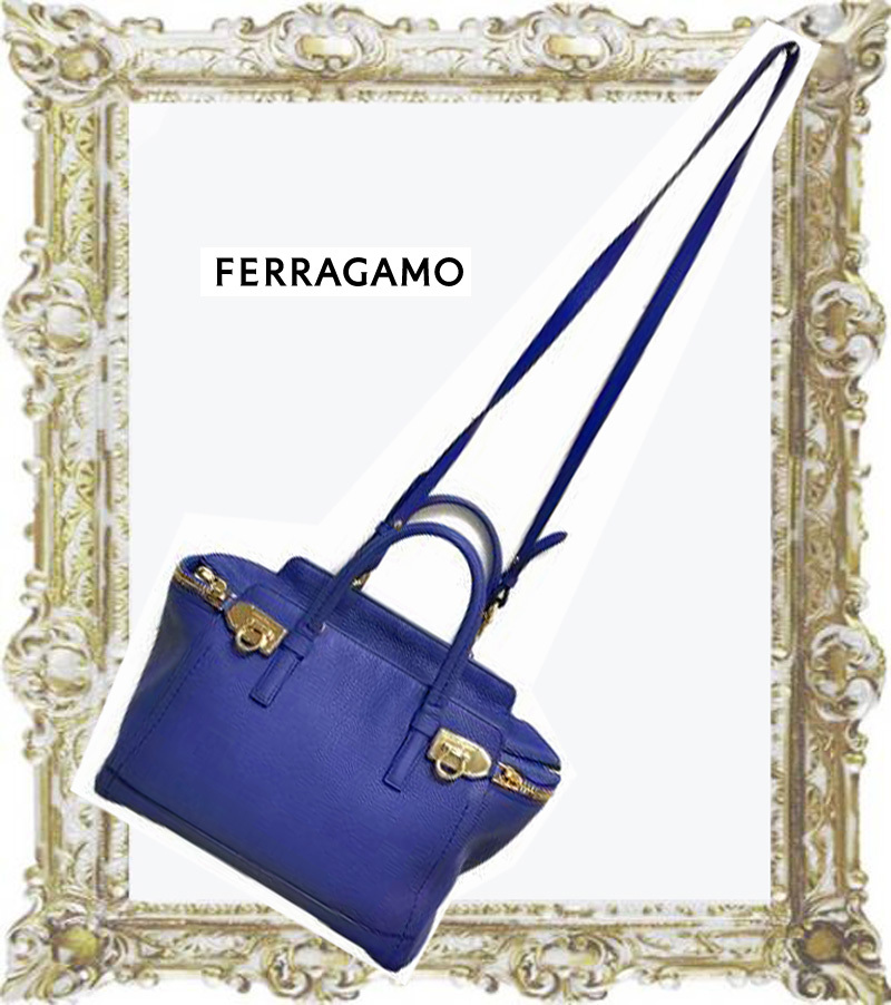 - 送料無料◆定価16万円 サルバトーレ フェラガモ ロイヤルブルー 2WAY ガンチーニZIPデザイン ショルダー付き トート ハンドバッグ