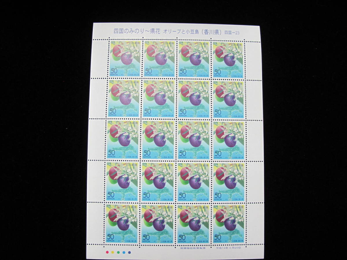 - ふるさと切手 平成14年 四国のみのり~県花 オリーブと小豆島 香川県 四国-23 50円 記念切手シート