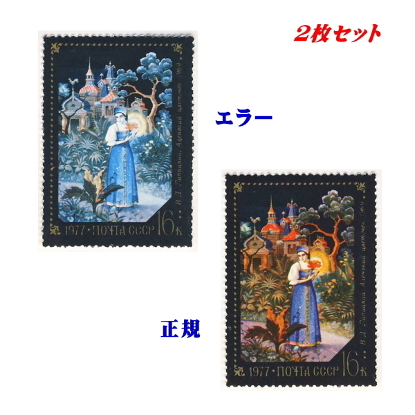 - ■エラー切手■ ソビエト 1977年 フェドスキノ絵画(1) /色違い /色抜け / ソ連・ロシア