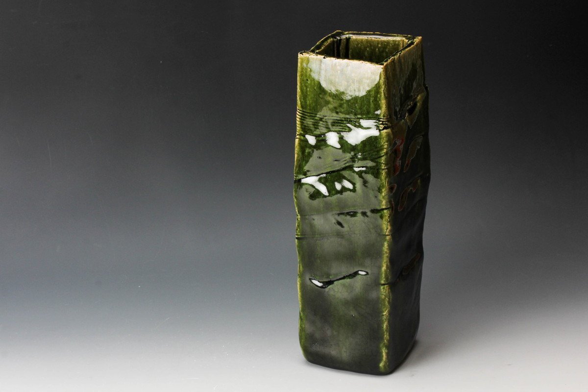 - 加藤春鼎 織部花入 共箱 3ヶ月以内 返品OK 50