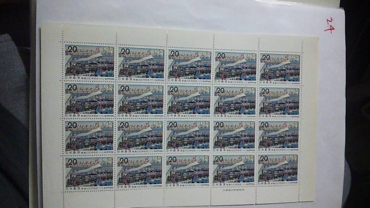 - .未使用切手 鉄道100年記念 20円20枚シート
