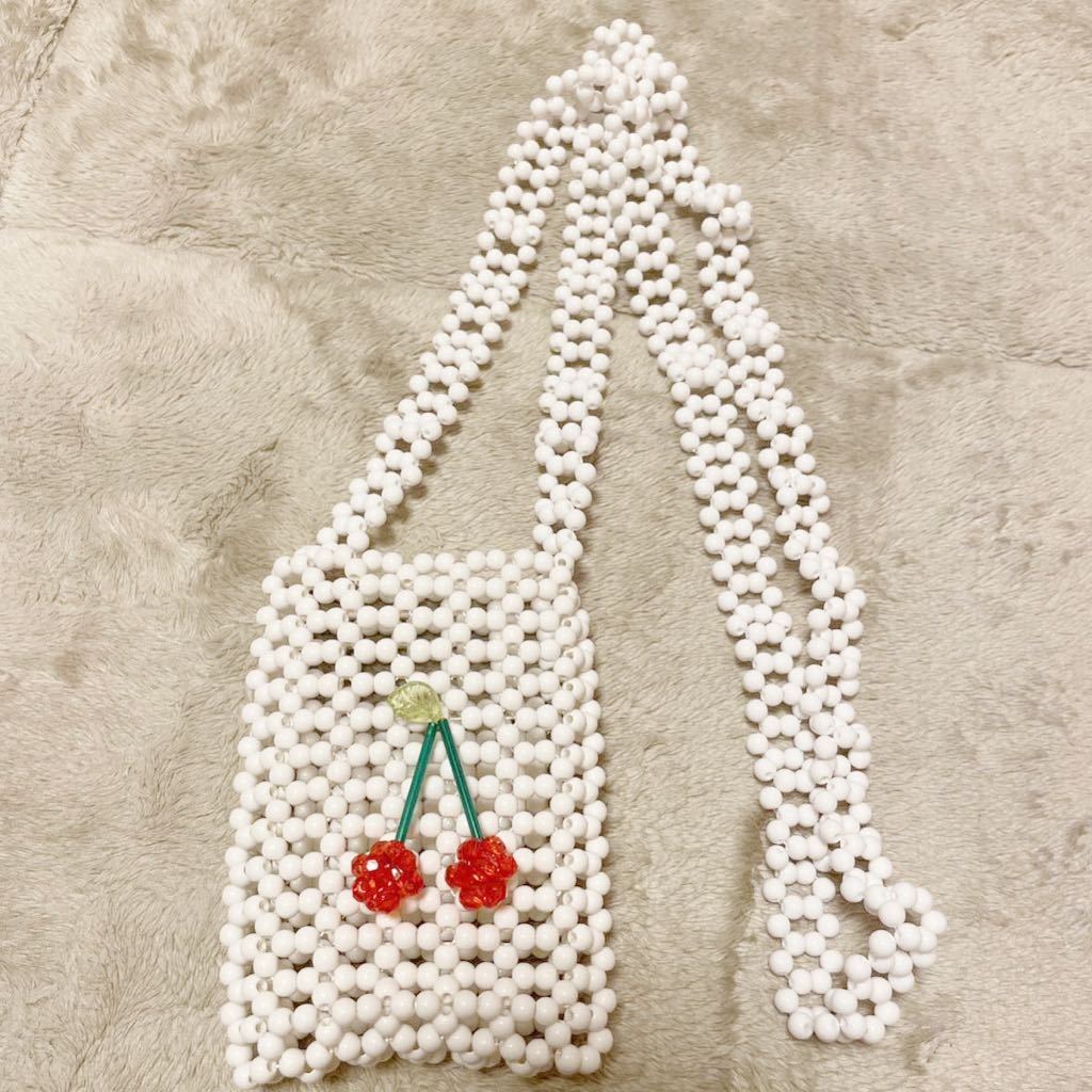 - ハンドメイド ビーズ チェリー さくらんぼ ポシェット