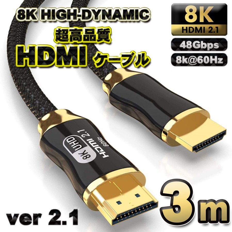 > 【高品質8K】HDMI ケーブル 3m 8K HDMI2.1 ケーブル 48Gbps 対応 Ver2.1 フルハイビジョン 8K イーサネット対応 3メートル