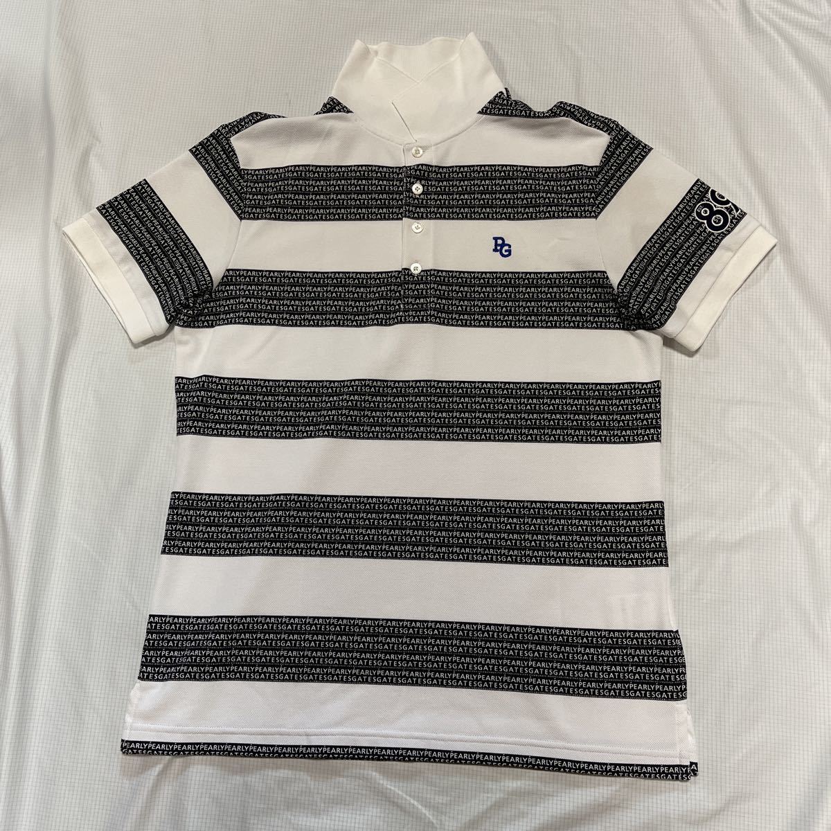 > 美品正規品 パーリーゲイツ サイズ5 総柄 ボーダー かのこ素材 ポロシャツ シワになりにくい 速乾性 送料無料