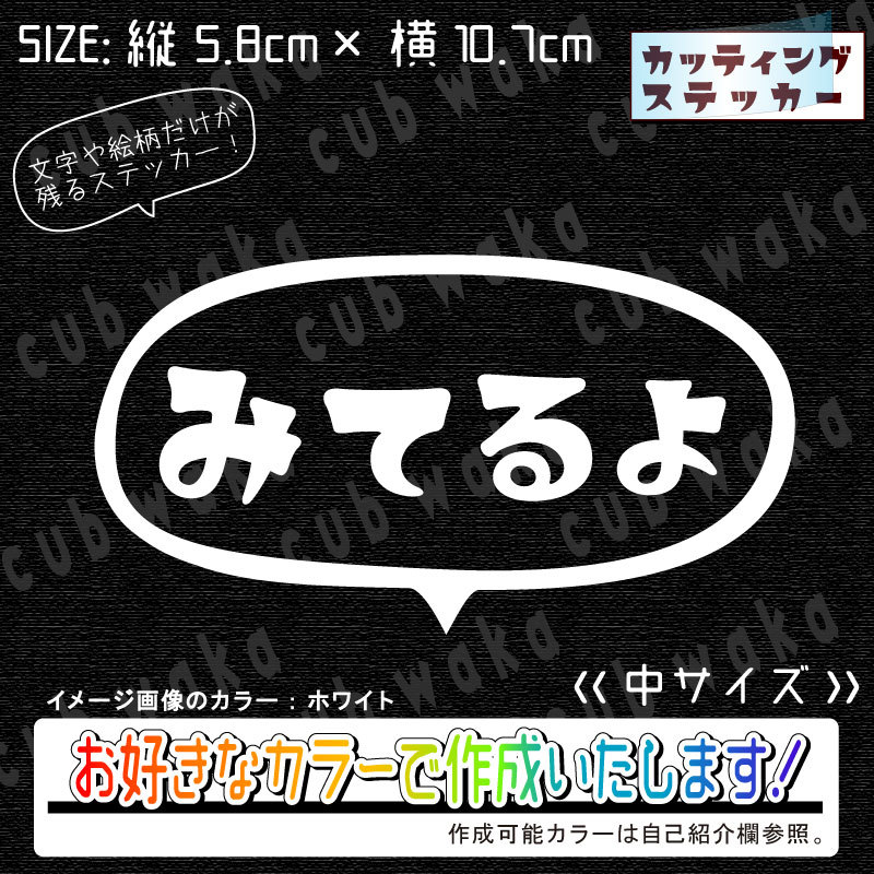 > みてるよ吹出し①中ステッカー 文字絵柄だけ残るカッティングステッカー・カブ・車・バイク・二輪・トラック・リアガラス・ドラレコ
