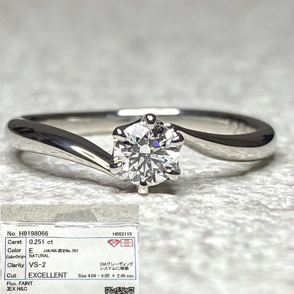 - ☆新品 ダイヤモンド リング サイズ9.5番くらい 0.251ct Eカラー VS2 3EX H&C ソーティング付 ブライダル 婚約指輪
