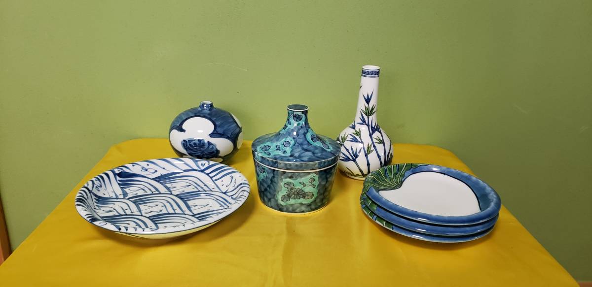- 【有田焼】館林源右衛門 梅紋花瓶 竹笹絵花瓶 菊紋菓子鉢 四海波皿 大根絵皿 計7点
