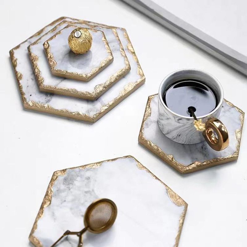 - 天然大理石のコースター3枚セット おしゃれ かわいい フルーツプレート ディスプレイスタンド デザートプレート 収納トレイ 雑貨 ゴールド