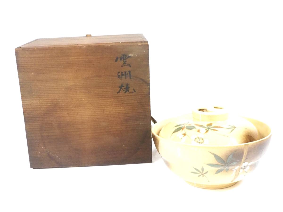 - 明治期 雲州焼 丼ぶり 陶器 明治28年5月新調の記載あり 共箱 直径18cm 高さ13cm 金継ぎが施され時代を超えて大切に使われてきた逸品ZZZ507