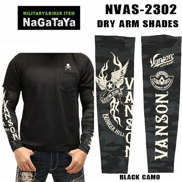 > VANSON バンソン NVAS-2302 ドライアームシェード ブラックカモ アームカバー 腕カバー 日焼け対策 吸汗速乾 UVカット