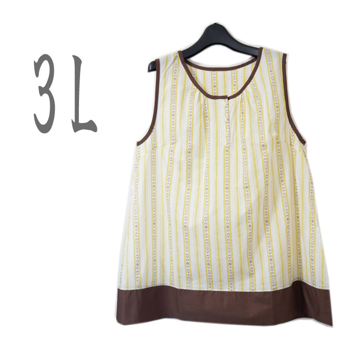 - ●新品/チュニック/ワンピース/3L/イエロー/ブラウン/綿/レディース/ナチュラル●f6321