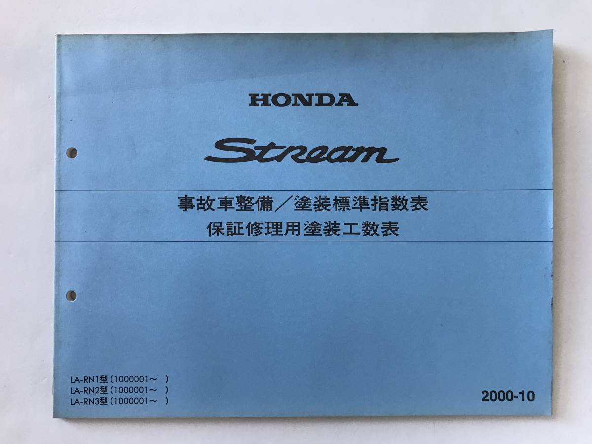 - HONDA Stream 事故車整備/塗装標準指数表 保証修理用塗装工数表 LA-RN1型 LA-RN2型 LA-RN3型 2000年10月 TM8390