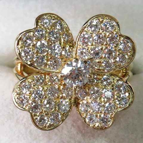 > 【値下げ交渉は質問欄より】素敵なダイヤの輝き☆幸運の四つ葉のクローバーデザイン☆K18YG製リング☆ピカピカ逸品指輪#11号!