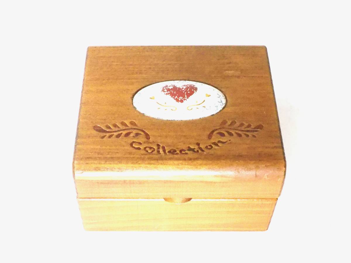 - 昭和ビンテージ 木製でカントリー調のデザインリングホルダー付リングケース NAGYA SANGYO 日本製 幅9cm 奥行き8cm 高さ5cm TCU507