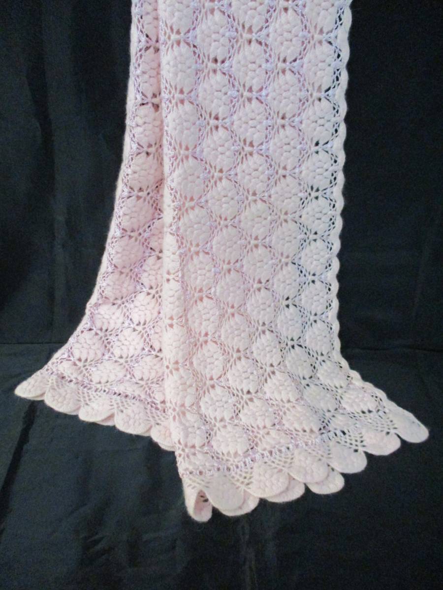 - ■IK 起毛 ピンク ショール ストール ロングマフラー 毛糸編み 和装小物 。