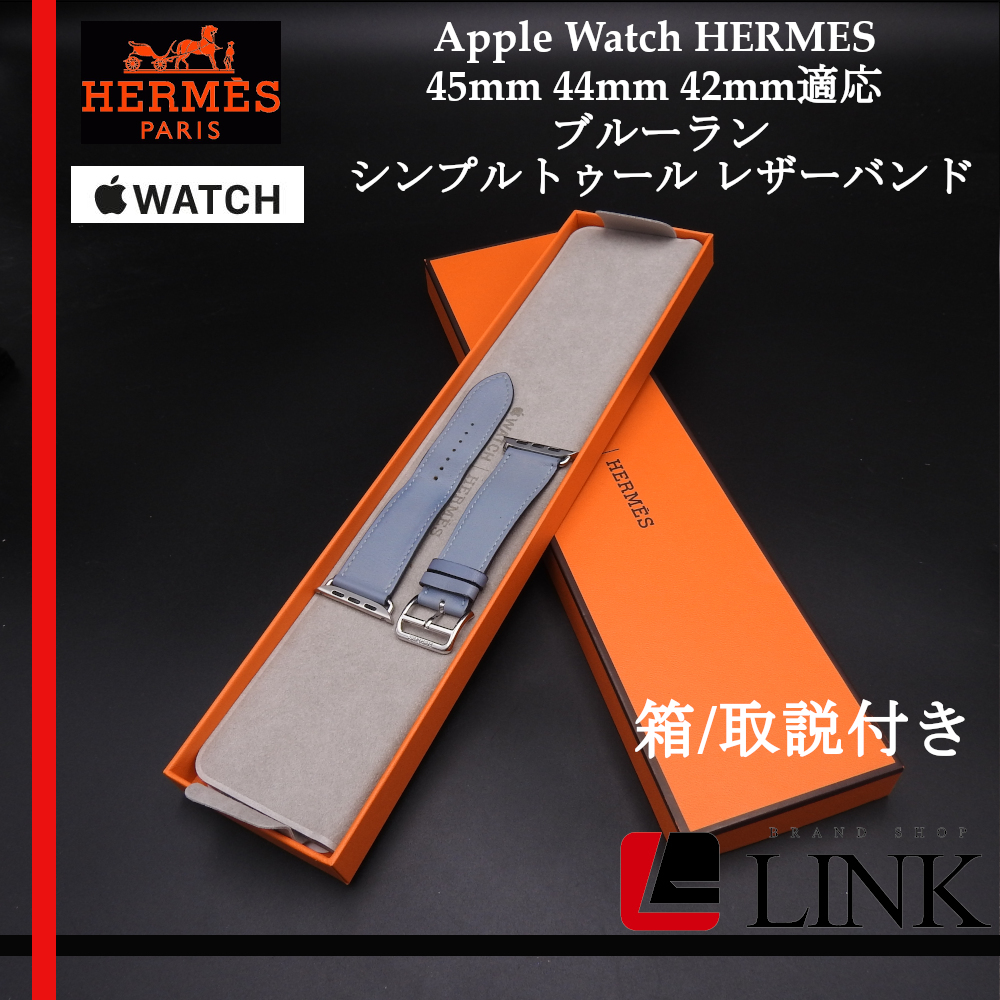 > 希少品【正規品】Apple watch HERMES 純正 45mm 44mm 42mm適応 ブルーラン シンプルトゥール レザーバンド アップルウォッチ エルメス