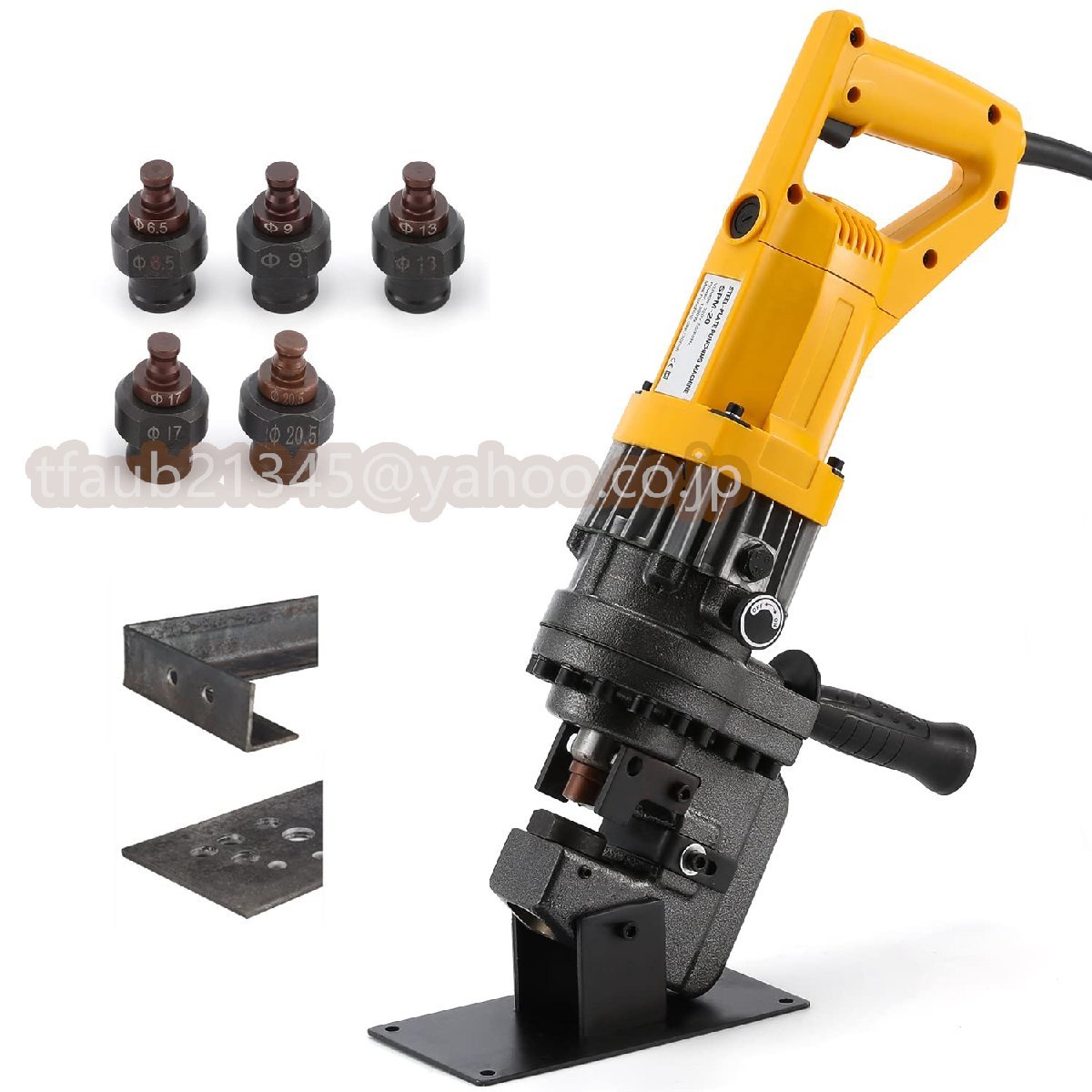 - 電動油圧パンチャー 電動パンチ 1300w Φ6.5~20.5mm 2~3秒で穴あけ ダイス5個付き 銅板/アルミ板/鋼板/鉄板/山形鋼対応 最大厚さ6mm