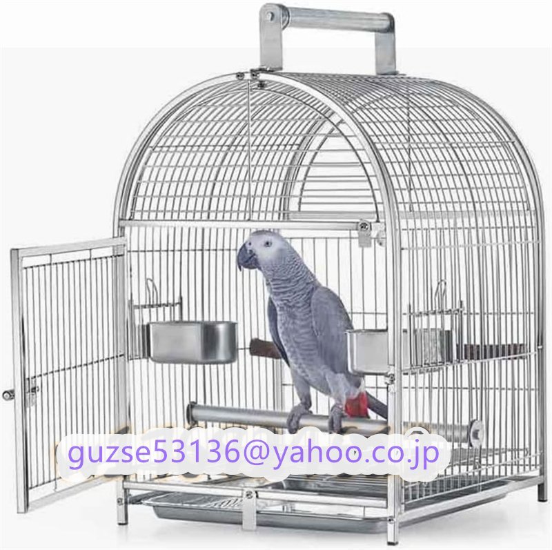 - 新品 ステンレス鋼 鳥用キャリーかご 中型のオウムに適しています トレイ フードカップ2個 スタンディングスティック2本付き カバー付き