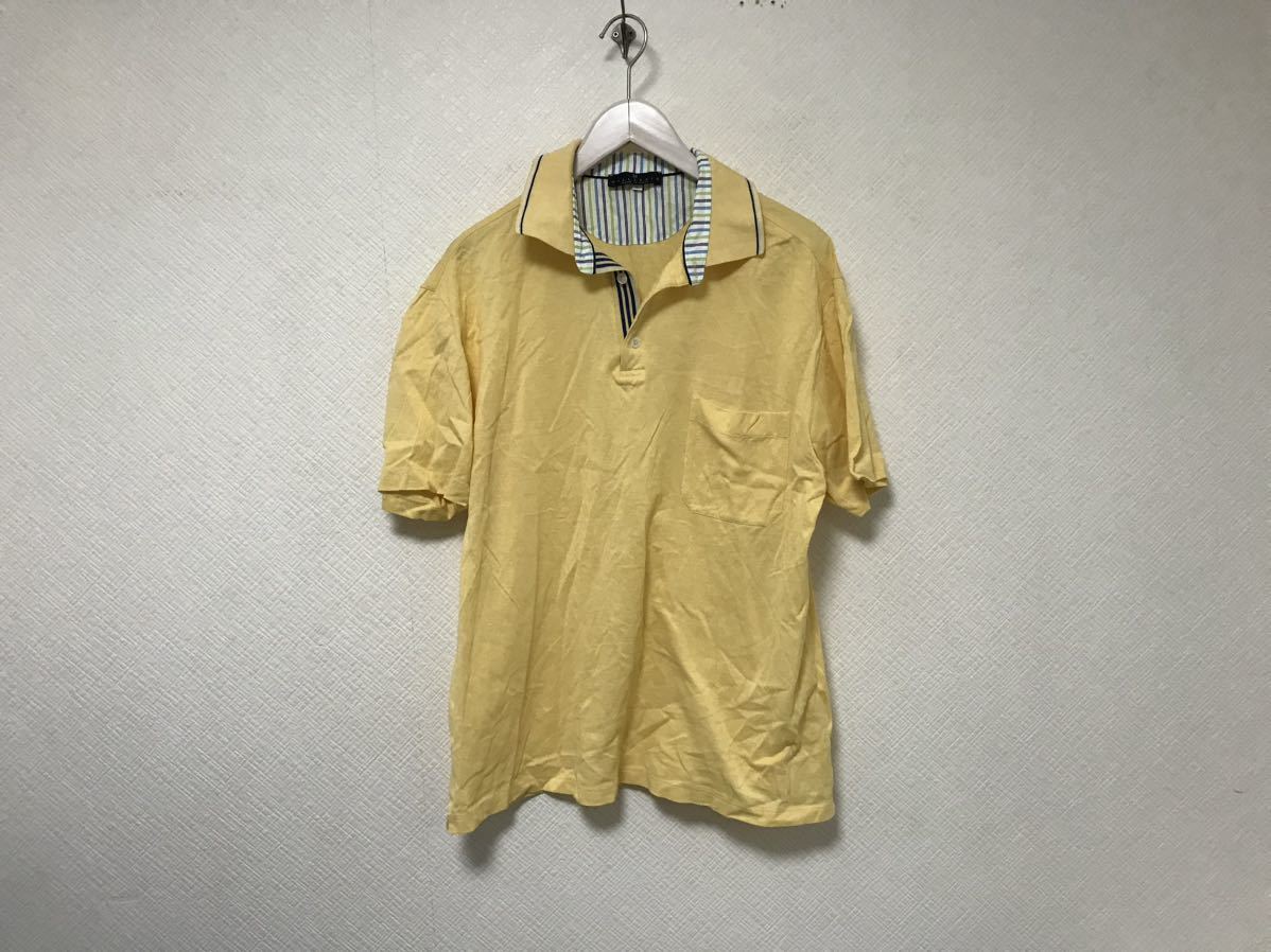 > 本物ミレニオMILLENNIOコットン半袖ポロシャツメンズアメカジサーフミリタリービジネススーツゴルフLイエローイタリア製