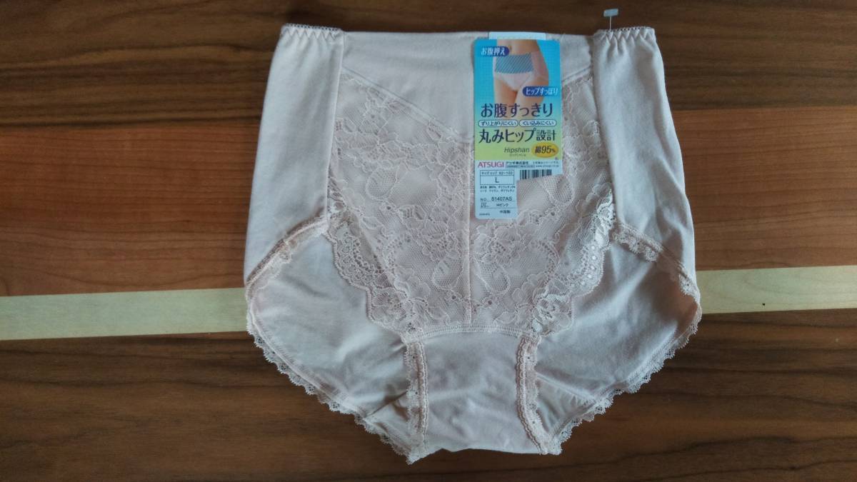 - アツギ ベージュ地フロントお花レース仕様のショーツ L 綿95% 丸みヒップ設計