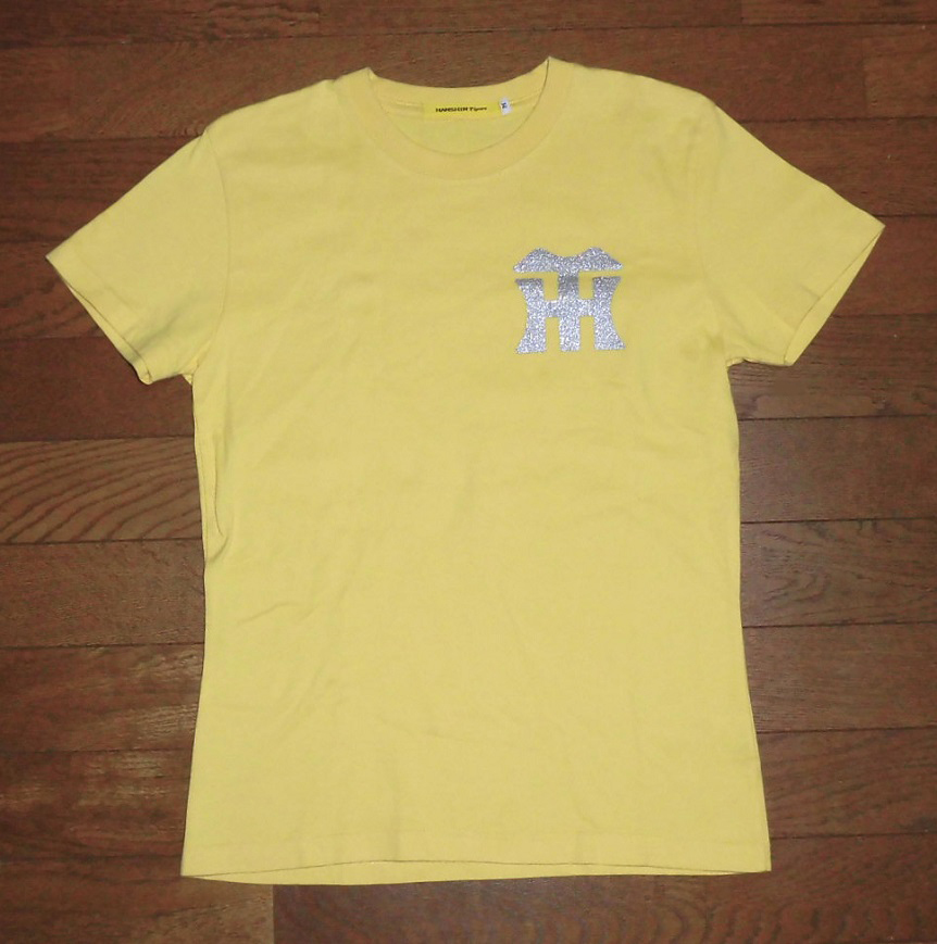 > 阪神タイガース ラメプリント ロゴマーク Tシャツ レディース 女性用 半袖 厚手コットン 正規品 YEL M 使用少 美品/猛虎甲子園六甲おろし