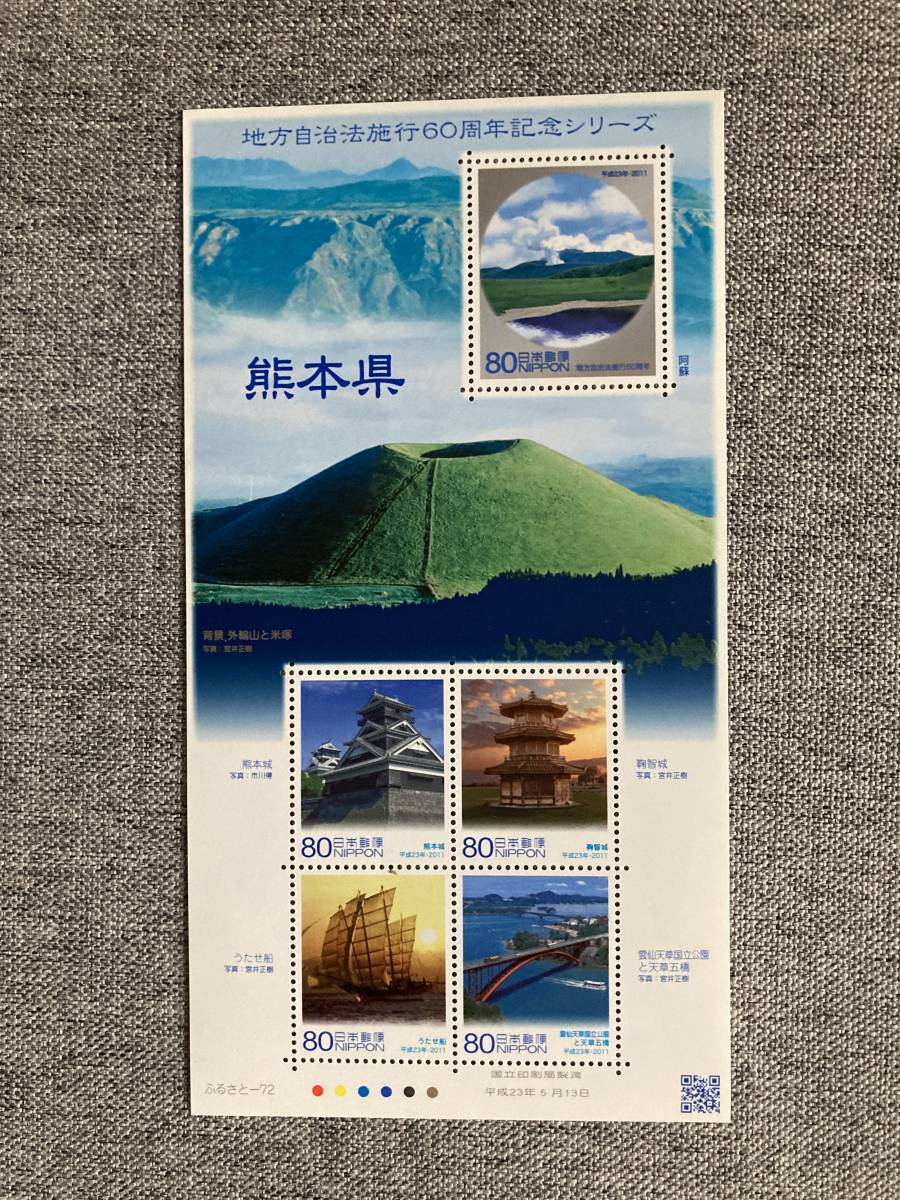 - ★未使用 ふるさと切手 地方自治法施行60周年記念 熊本県 阿蘇 熊本城 鞠智城 うたせ船 雲仙天草国立公園と天草五橋 外輪山と米塚 80円5枚