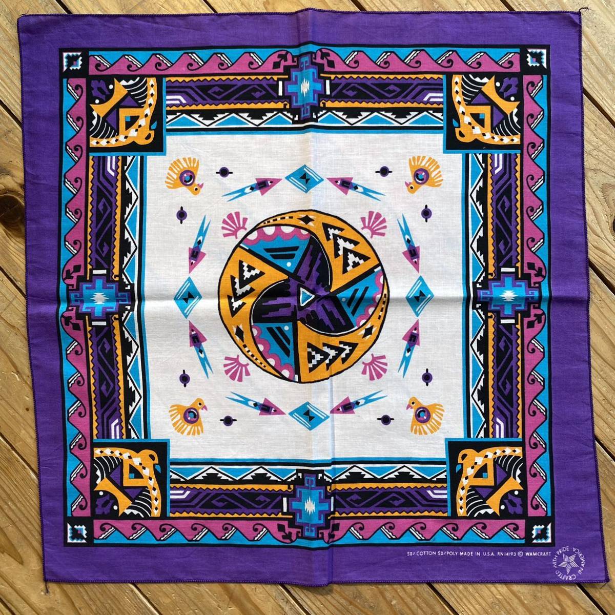 - 送料無料 Vintage バンダナ WAMCRAFT ワムクラフト ネイティブ柄 パープル Made in USA アメリカ仕入 雑貨 ハンカチ ヴィンテージ A0685