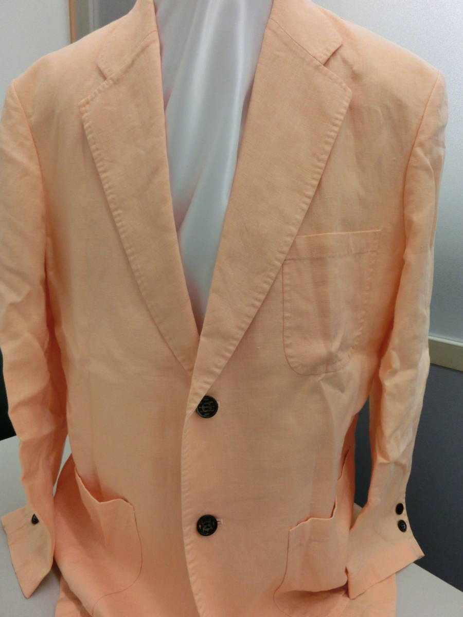 > 美品☆USED◆THISTLE 上質テーラーカラーシングルジャケット◆麻100◆サーモンピンク(オレンジ系)◆L