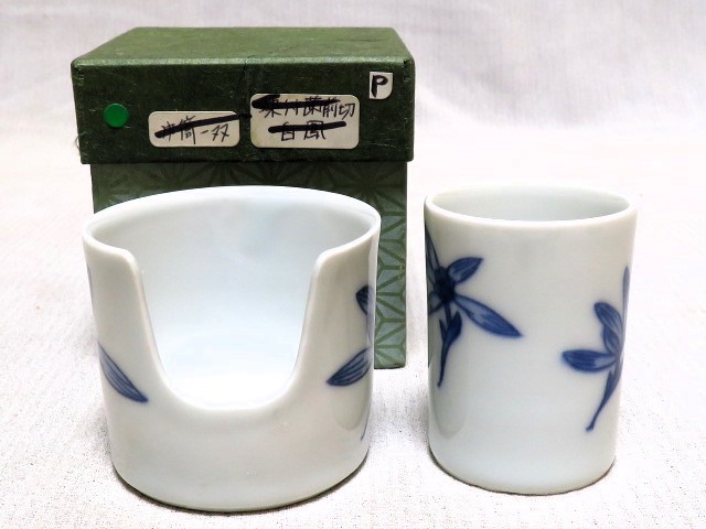 - 巾筒一双 染付蘭前切 平安白鳳 茶道具 紙箱 その1