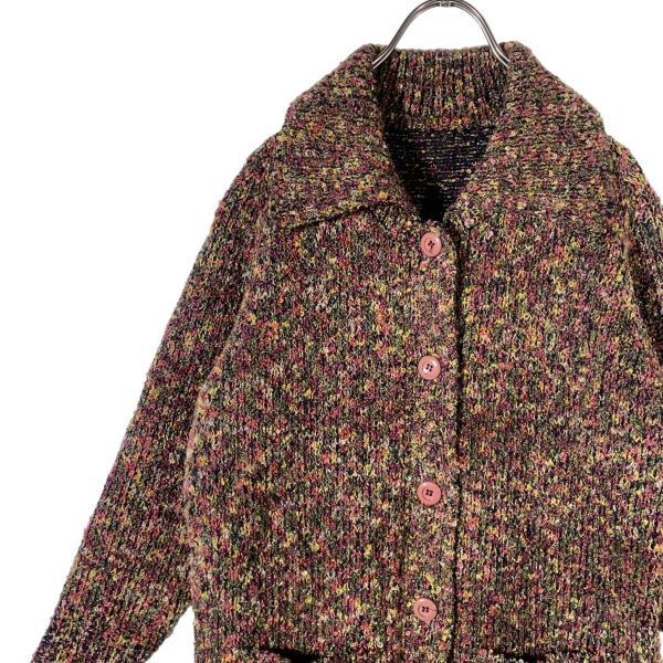 - 70s 80s ビンテージ カーディガン ミックスニット ニットカーディガン ポケット レディース 古着 匿名配送