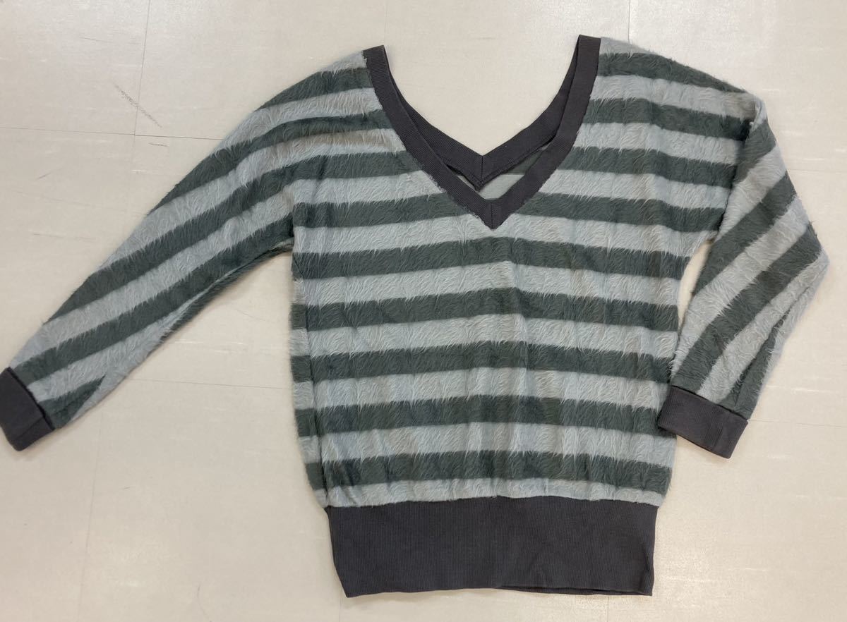 - グレーボーダーセーター デュレルブランド ふわもこ M
