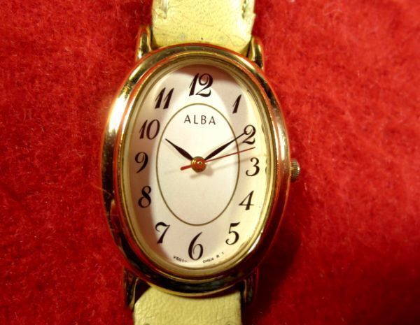 SK5K0)★完動腕時計★セイコーALBA★楕円ホワイト★レディース