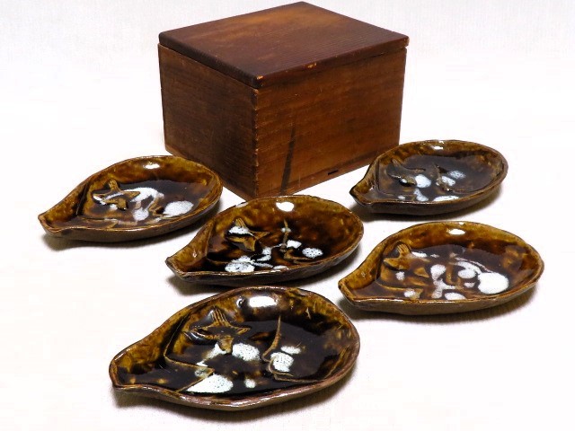 - 茄子型小皿まとめて5客 富士 鷹 お手塩皿 用心箱