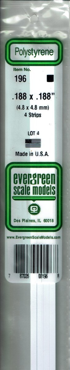 - エバーグリーン .188x.188 プラ棒 4.8x4.8mm 4本入り