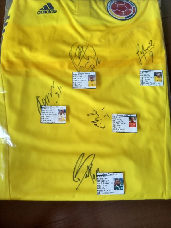 - コロンビア代表ユニフォーム・マルチサイン入り 直筆サイン入り(5名)Luis Muriel Miguel Borja Cristian Dajome Cristian Bonilla