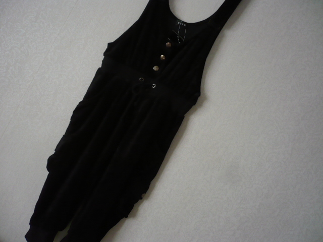 - セール★ベロアサロペット 黒 オールインワン