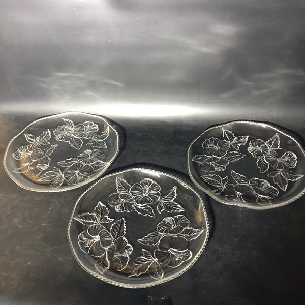 - ガラス製大皿3枚セット 36㎝ 花柄 透明グラス
